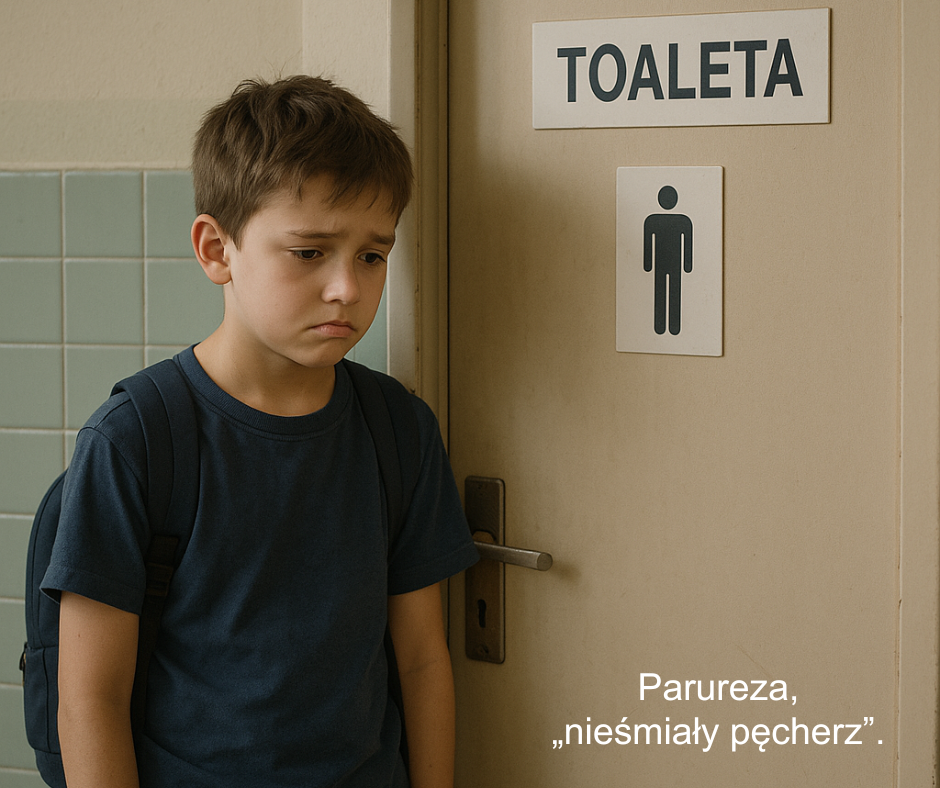 Parureza, potocznie nazywana „nieśmiałym pęcherzem”, to trudność z oddawaniem moczu wtedy, gdy dziecko czuje, że jest obserwowane lub że w pobliżu są inne osoby. U wielu dzieci problem pojawia się przede wszystkim w szkolnej toalecie, na wycieczce, kolonii czy w domu znajomych. W bezpiecznym, prywatnym miejscu dziecko zwykle siusia bez trudu. To nie jest „zachcianka” ani złośliwość. To reakcja lękowa, która ma swoje biologiczne i psychologiczne podstawy i której można skutecznie przeciwdziałać. Nie dotyczy tylko małych dzieci, często wystepuje u nastolatków.